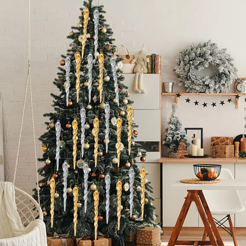 12/24pcs Simulation Ice Icicles Christmas Tree Pendant